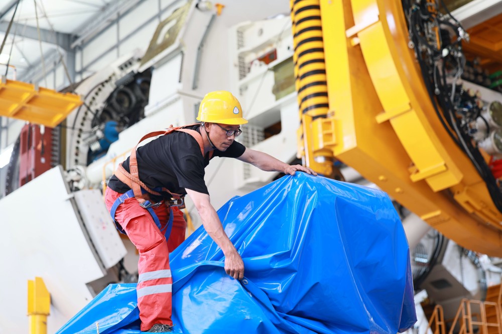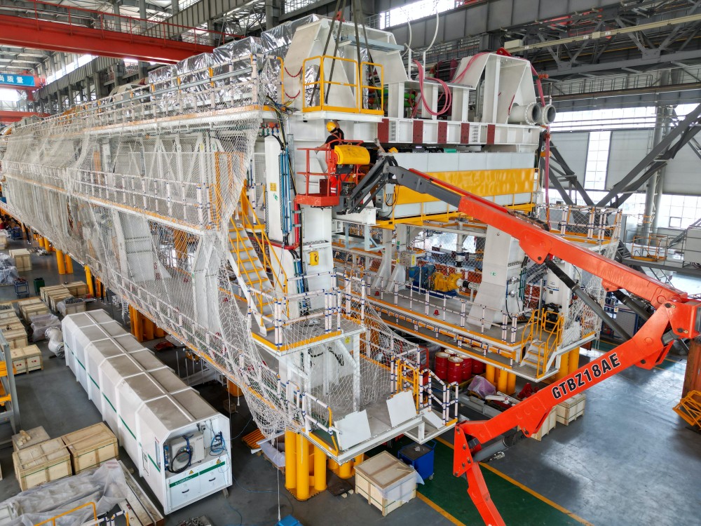 6月4日,中铁装备盾构总装车间,1459号盾构机正在拆机打包,准备发运。