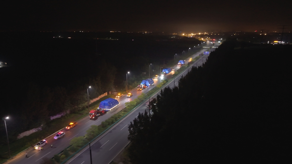 6月14日凌晨,盾构机大型组件运往周口港途中。