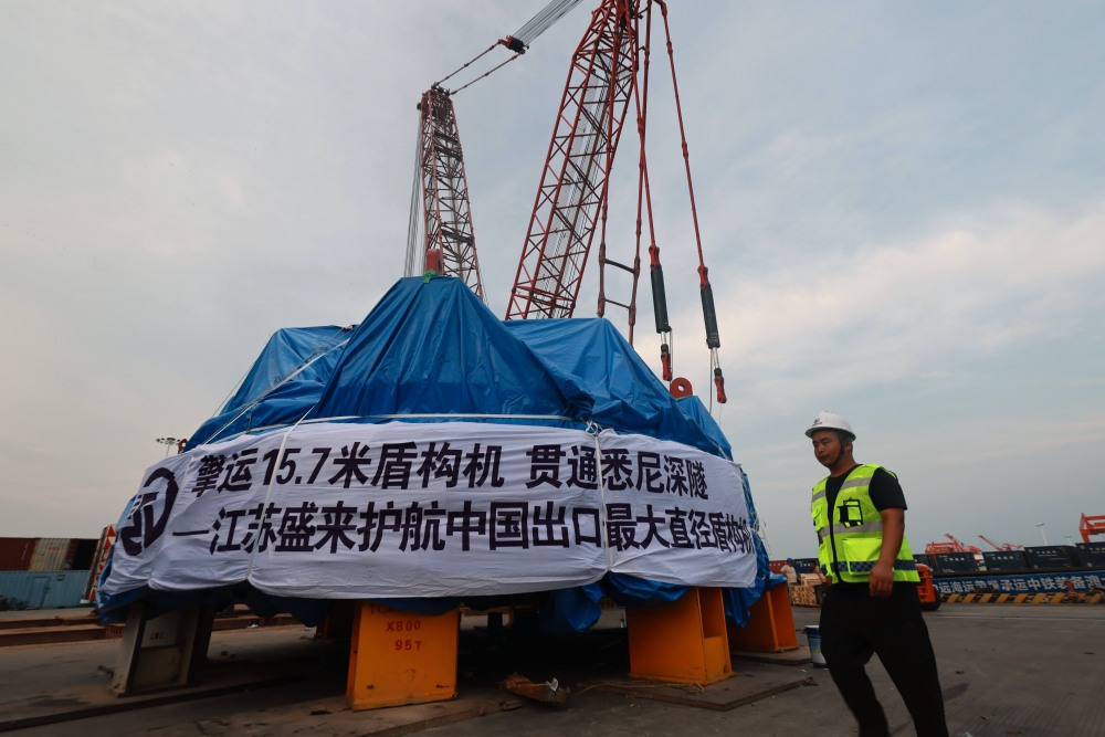 8月5日晚,万里长江第一大港——太仓港,中国出口海外最大直径盾构机“中铁1459号”坐着“育鹏轮”踏上远赴悉尼的征程。