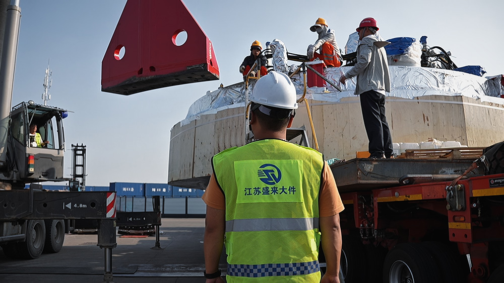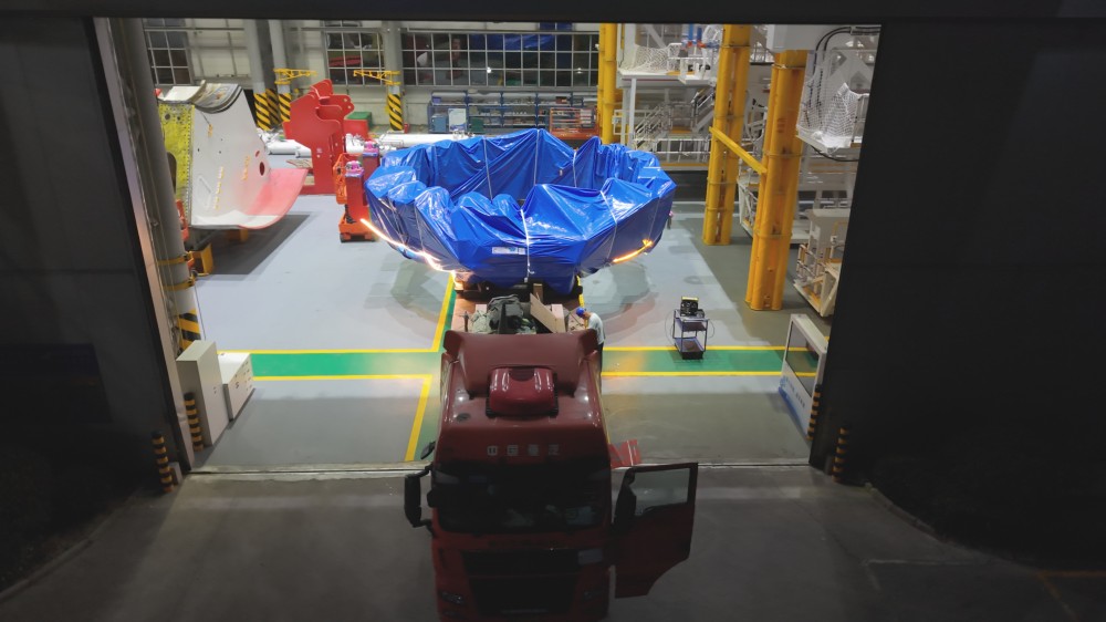 6月14日,盾构机大型组件在郑州市经开区中铁工程装备集团有限公司盾构总装车间装车发运。