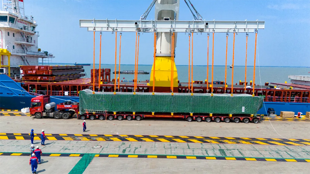 我们首创“公路+内河+海运”水路联运方案,拆分8件超大件与175个标准件分路径运输,攻克12000公里跨境多港口转场、厘米级吊装精度、船体精准配重等多重挑战,最终实现“零破损、零延误、零事故”交付,为中国制造高端装备出海打造成熟运输范式,有力提升中国物流企业国际认可度。